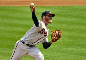 Braves starting pitcher Mike Foltynewicz (26) delivers a pitch to a
