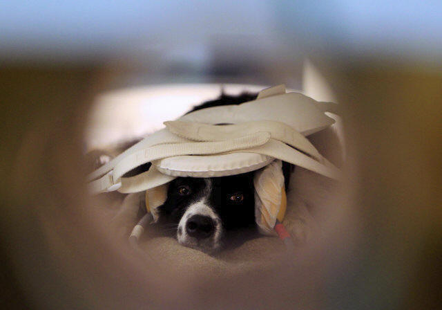 Maverick, a Border Collie, lies in a MRI scanner in a neurology
