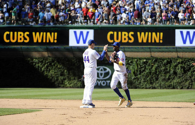 Cubs first baseman Anthony Rizzo (44) and center fielder Dexter