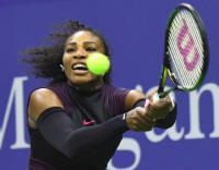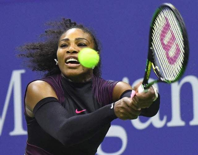Serena Williams hits to Vania King. Mandatory Credit: Robert