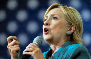Democratic presidential nominee Hillary Clinton speaks during a