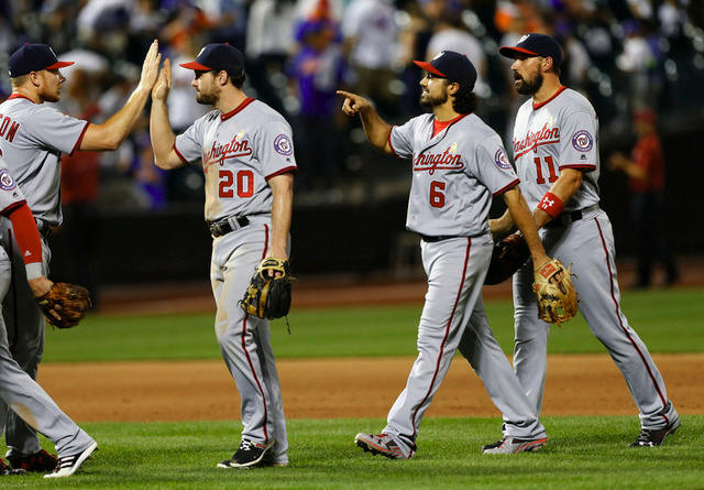 baseman Ryan Zimmerman (11) celebrate after defeating the New York