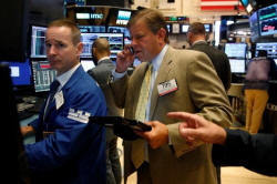 Traders work on the floor of the New York Stock Exchange (NYSE) in