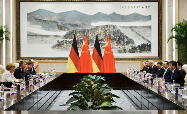 Chinese President Xi Jinping (R) and German Chancellor Angela Merkel