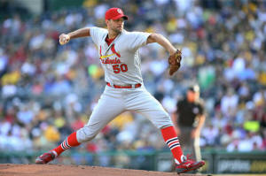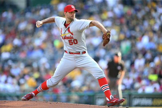 Cardinals starting pitcher Adam Wainwright (50) delivers a pitch