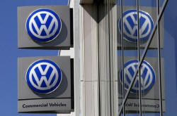 File photo of Volkswagen logos adorning a sign outside a dealership