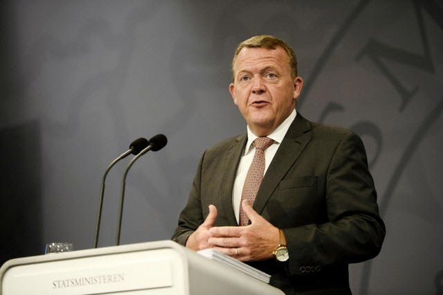Danish Prime Minister Lars Lokke Rasmussen speaks during a press
