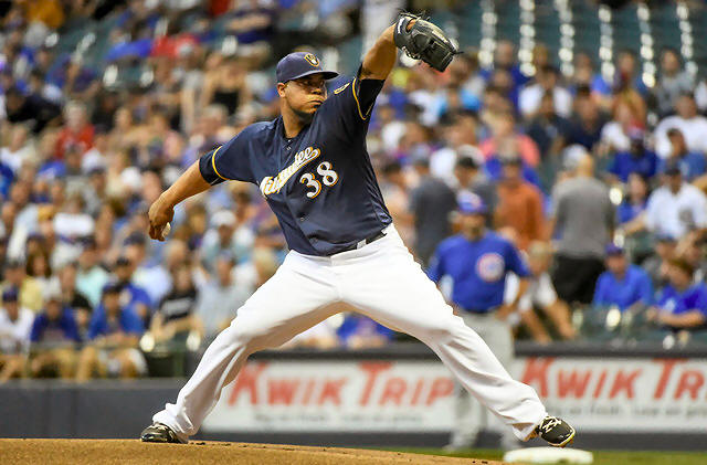 Brewers pitcher Wily Peralta (38) throws a pitch in the first inning