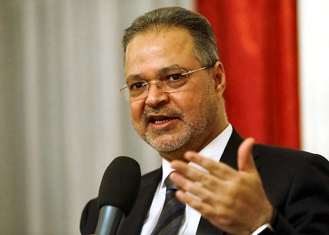 Yemeni Foreign Minister Abdel-Malek al-Mekhlafi speaks to the media