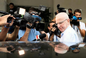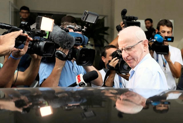(IOC), Patrick Hickey, leaves a police station in Rio de Janeiro,