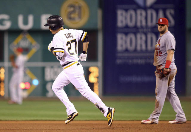 Jung Ho Kang (27) circles the bases with a game wining home run as