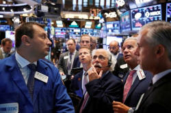 Traders work on the floor of the New York Stock Exchange (NYSE)