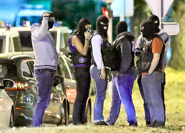 French policemen take part in a police raid in Boussy-Saint-Antoine