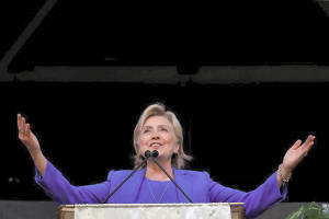 Democratic presidential candidate Hillary Clinton speaks to the