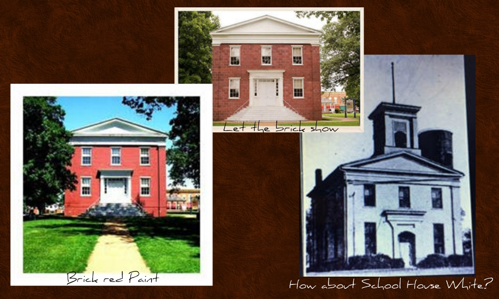 As the Mt. Pulaski Courthouse Foundation moves to the next phase of repairs, the paint on the outside of the east wall of the courthouse will be removed. After drying out for a year, new, breathable paint will be put on. Then another period of waiting will follow before other walls will be done. Vote to paint the Courthouse red as it is now, return it to the original brick, or paint it white.