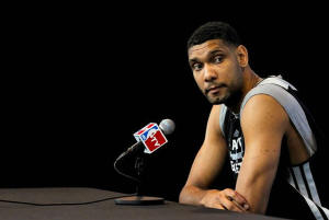 San Antonio Spurs forward Tim Duncan attends a media session for