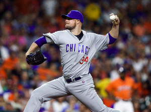 Cubs starting pitcher Jon Lester (34) delivers a pitch during the
