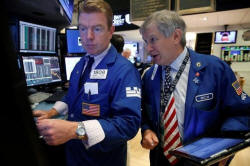 Traders work on the floor of the New York Stock Exchange (NYSE) in