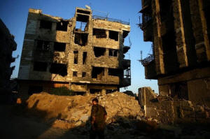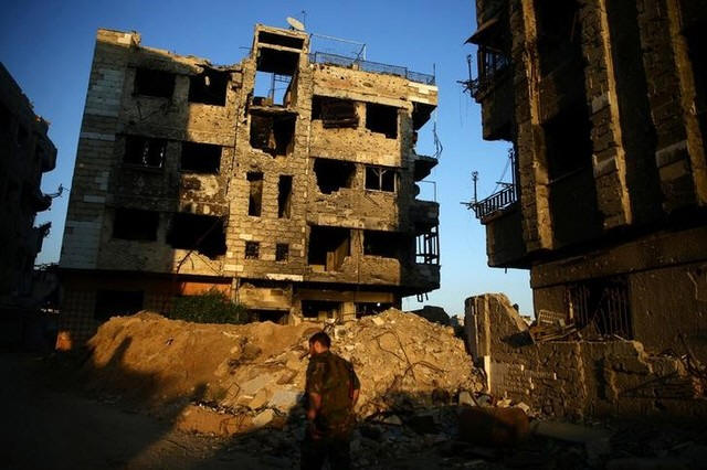 damaged buildings in the rebel held Jobar, a suburb of Damascus,