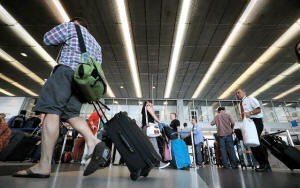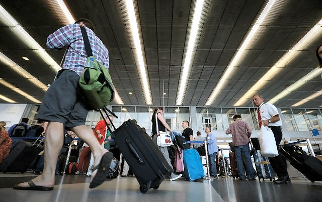 Passengers make their way through a terminal at O'Hare International