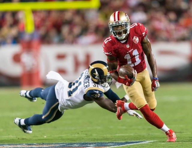 49ers wide receiver Quinton Patton (11) runs the ball against the