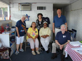 At left, volunteers at the newly opened Logan County Democratic Headquarters are (L to R): Chairperson Rebecca Drake, Secretary Joyce Lichtenwalter, Sandy Wilmert, Ericka Sullivan, Gary Davis, and Bill Krepps.