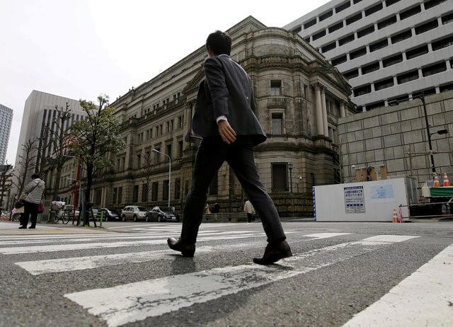 A businessman walks past the Bank of Japan (BOJ) building in Tokyo,