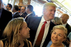 Republican presidential nominee Donald Trump makes his way through a