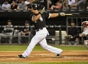 White Sox first baseman Jose Abreu (79) hits an RBI single during