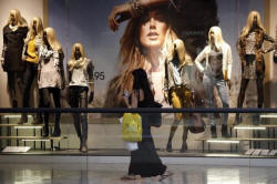 A shopper passes a window display at the Beverly Center mall in Los