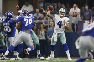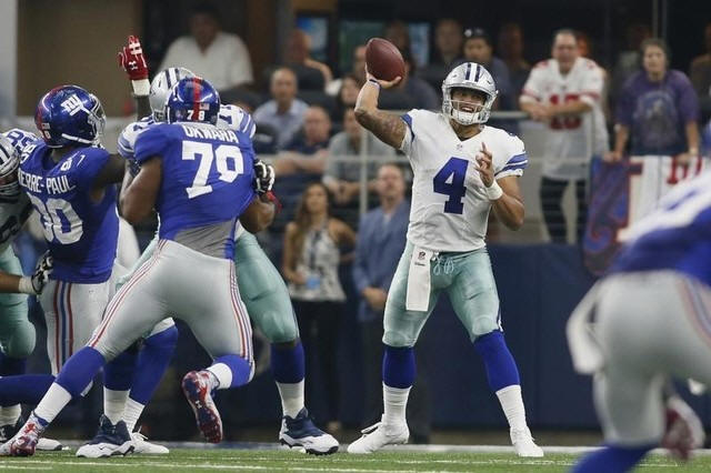 quarterback Dak Prescott (4) throws a pass in the fourth quarter
