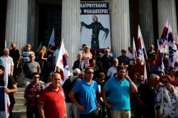 Zappeion Hall, as protesters from the Communist-affiliated trade