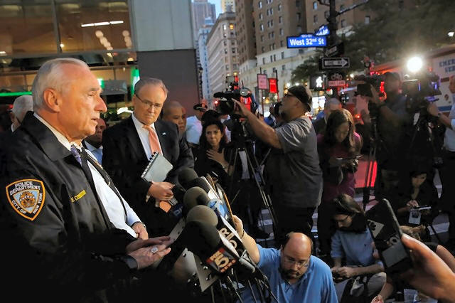 New York City Police Commissioner William Bratton speaks to media at