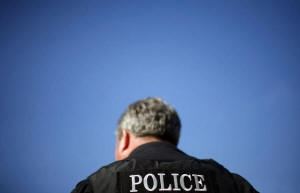 File photo of a police officer looking on outside the Sandra Day