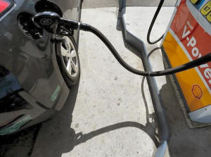 A car is filled with gasoline at a gas station pump in Carlsbad,