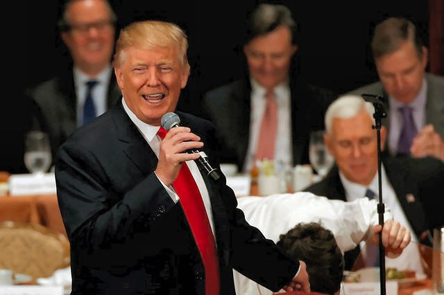 Republican presidential nominee Donald Trump gestures as he speaks to