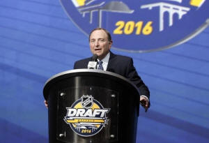 NHL commissioner Gary Bettman speaks before the first round of the