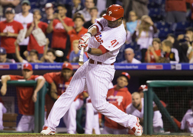 Phillies left fielder Jimmy Paredes (41) hits a walk off RBI single