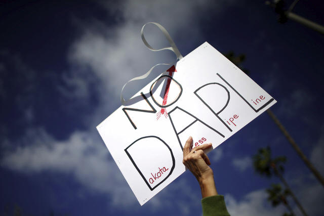 Protesters demonstrate against the Energy Transfer Partners' Dakota