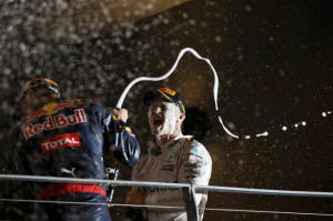 opening lap, Rosberg stayed clear of a late charging Daniel