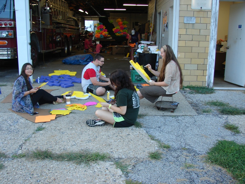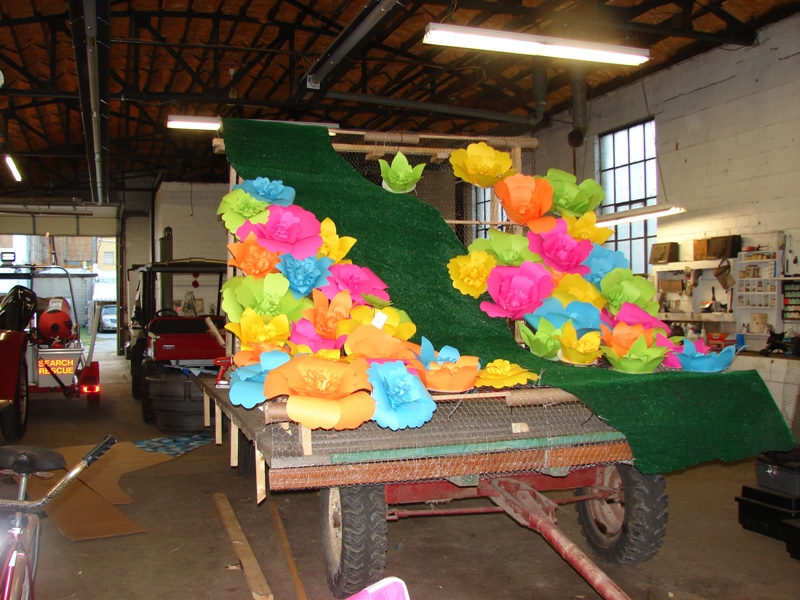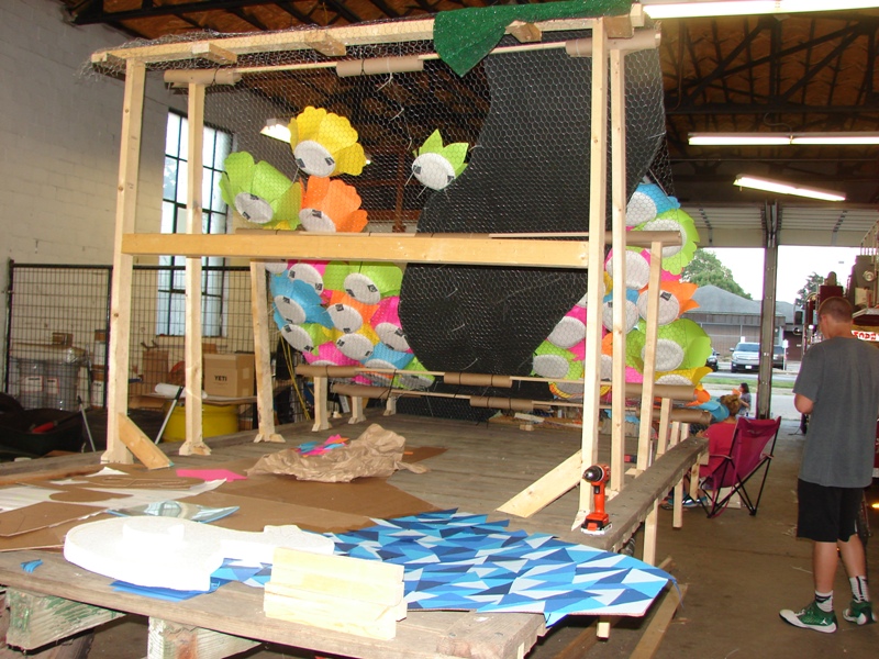 Homecoming Parade. This float is under construction now with