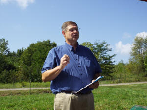 With the plot tour over, guests returned to tent area to hear from Richard Ritter of Flanagan State Bank. Ritter’s Bank is one of a few banks that are aggressively working with organic producers.