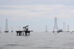 An oil pump is seen in Lake Maracaibo, in Cabimas, Venezuela, August
