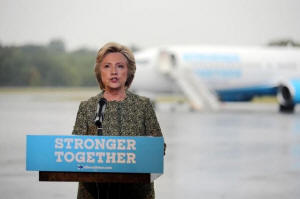 media before boarding her campaign plane at the Westchester County