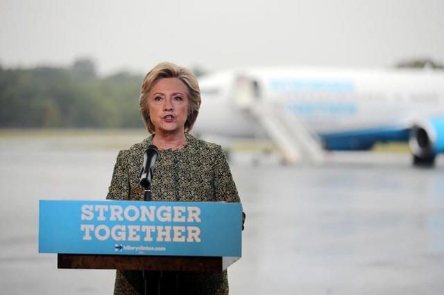 U.S. Democratic presidential candidate Hillary Clinton speaks to the