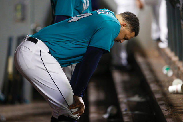 Mariners starting pitcher Taijuan Walker (44) reacts in the dugout