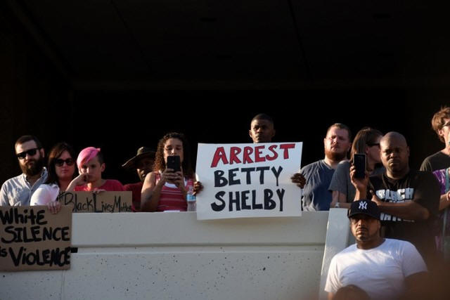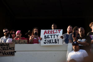 Protesters calling for the arrest of Officer Betty Shelby, who shot