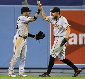 Giants blank Dodgers but lose Crawford, Cueto