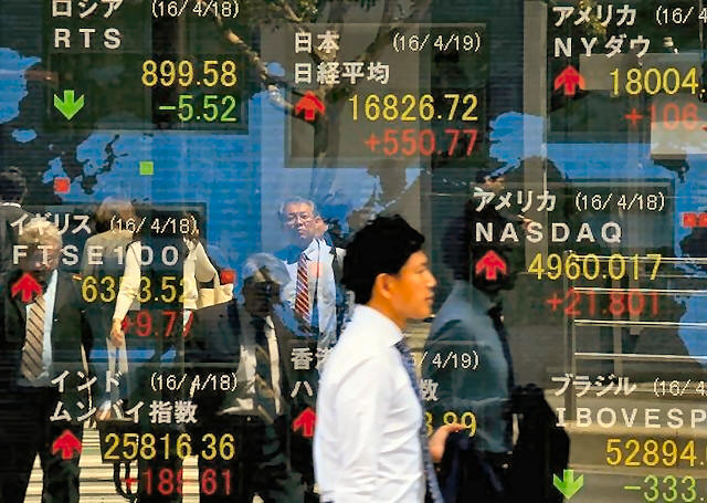 indices outside a brokerage in Tokyo, Japan April 19, 2016.