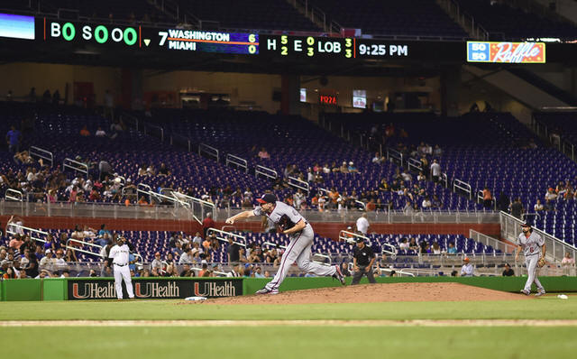 the seventh inning against the Miami Marlins at Marlins Park. The
